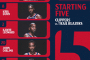[流言板]开拓者今日首发:夏普、卡马拉、默里、阿夫迪亚、克林根